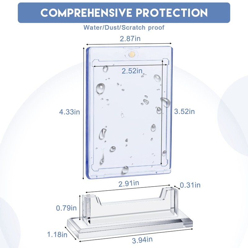 - Size Information: each trading card case is approximately 2.87 x 4.33 inches, designed to store standard size cards; The size of the slab stand is about 3.94 x 1.18 x 0.31 inch, and the card slot is 0.79 inch high, which is spacious enough to hold the magnetic card holder and display your card safely