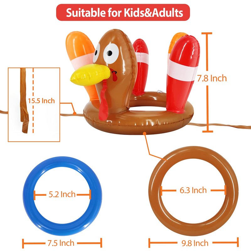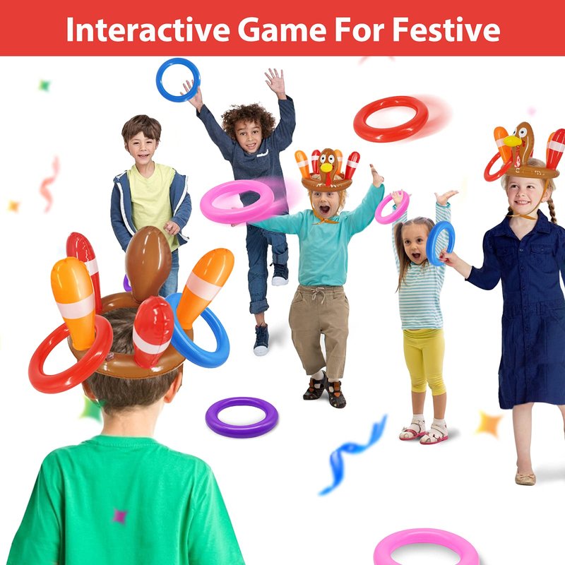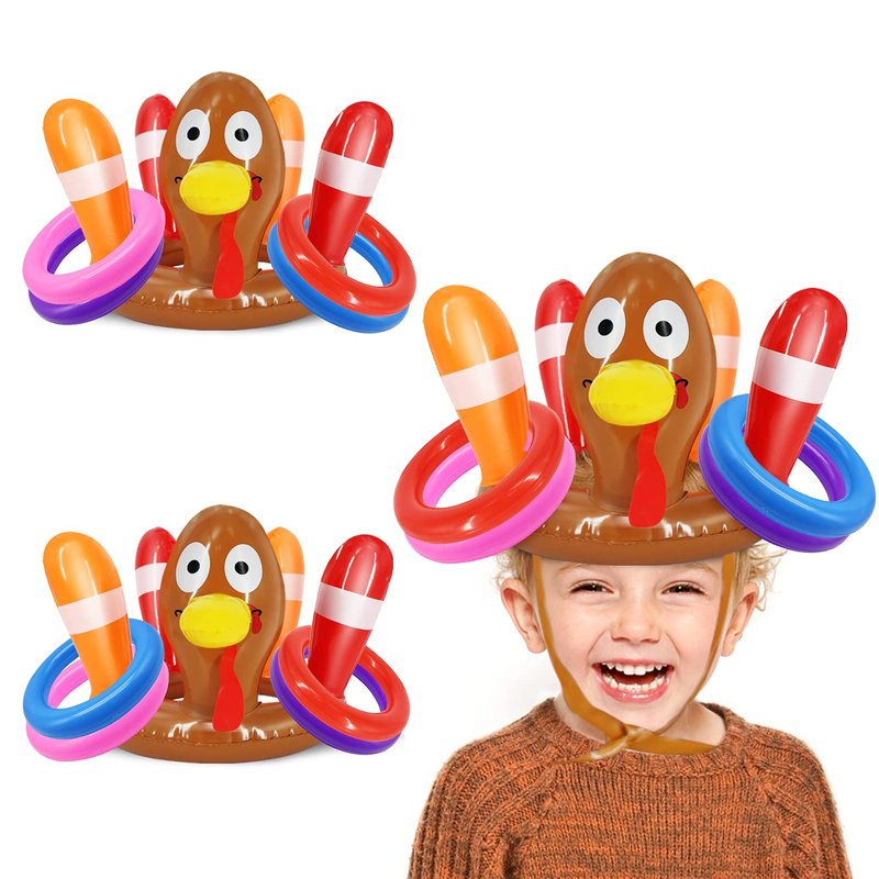- Thanksgiving Inflatable Ring Toss Games: Set included 3 inflatable turkey hats and 12 Inflatable large toss rings (pink x3, red x3, purple x3, blue x3).Unique design Thanksgiving Turkey shaped Ring Toss Games