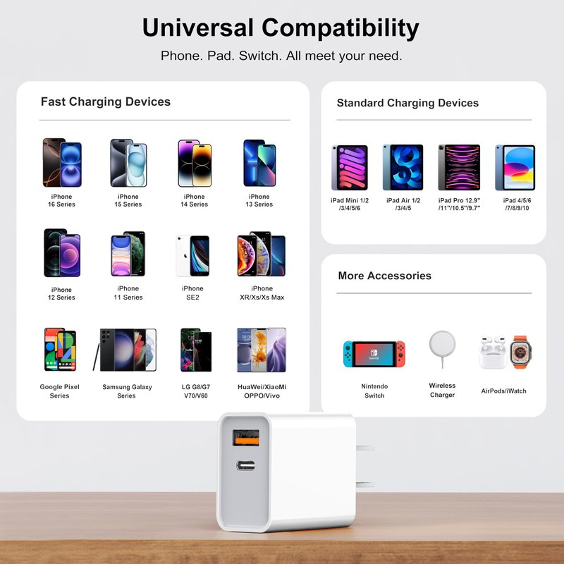 - 3 Pack Dual Port Charger: Compatible for iPhone 16/15/15 Pro/ 15 Pro Max/15 Plus/14/14 Plus/14 Pro/14 Pro Max/13/13 Pro Max/13 Pro. Block two in one - USB-A and USB-C ports to charge two devices simultaneously at high speed. Minimize waiting time and frees you from messy chargers with various interfaces