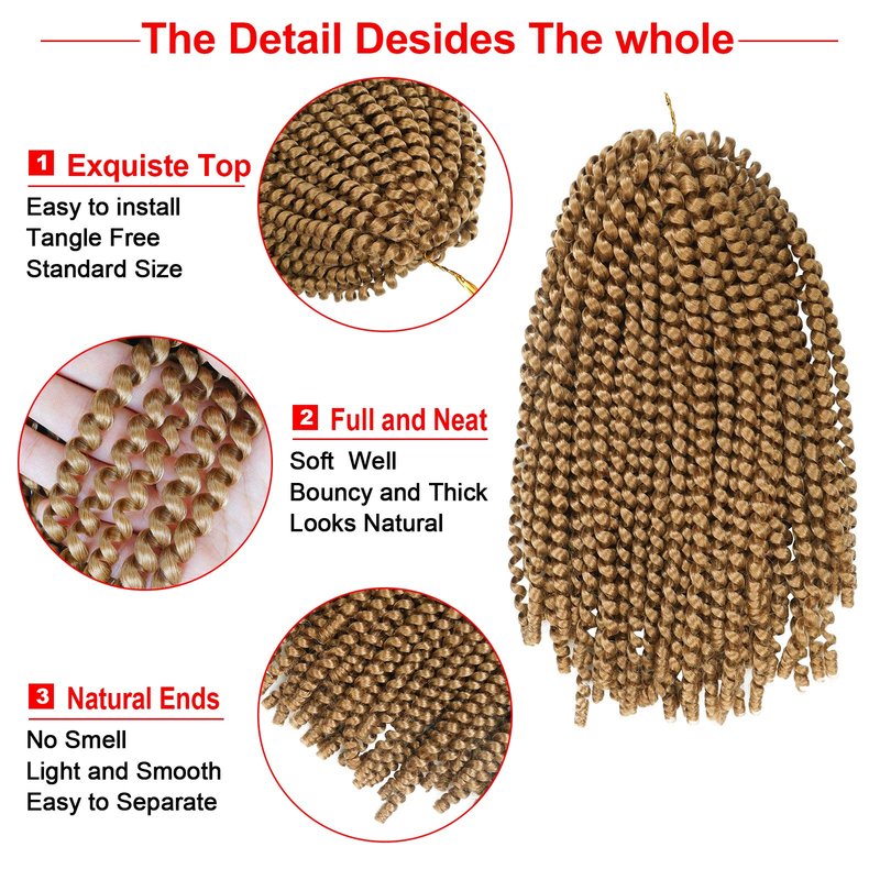 - Hair Material: 100% Kanekalon Hair Extensions, 12 Inch Spring Twist Bomb Twist hair