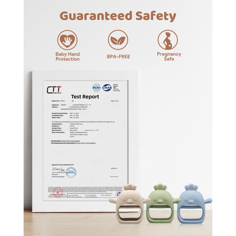 - 【Food Grade Soft Silicone】 Teethers are made of BPA free silicone with no small part to provide a strong, yet soft biting experience. The teething toy can be easily cleaned with a cloth, dishwasher and freezer safe. Our teethers exceed all government safety regulations and standards for parents' peace of mind.