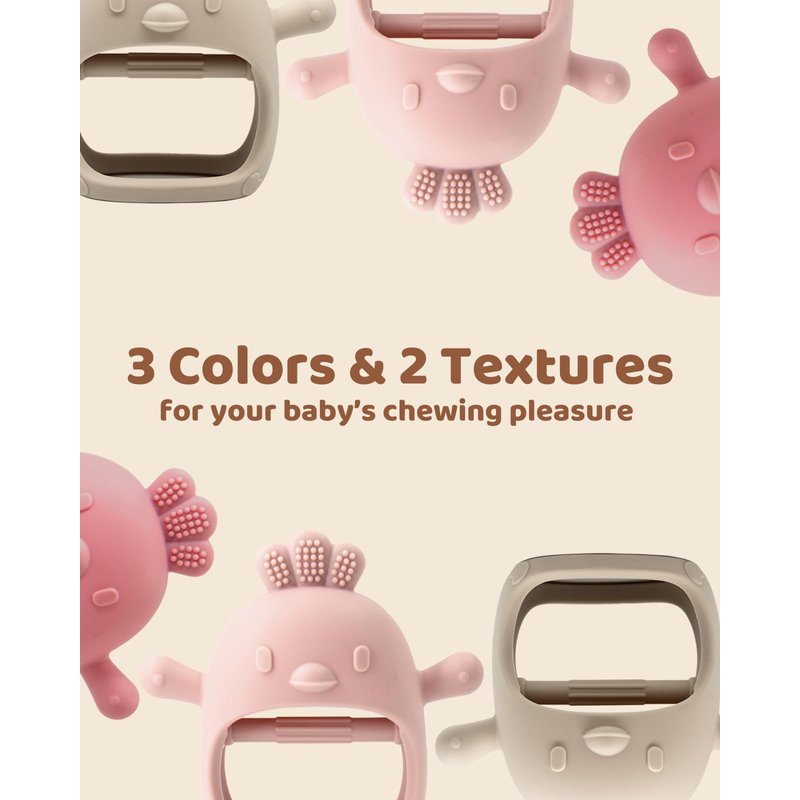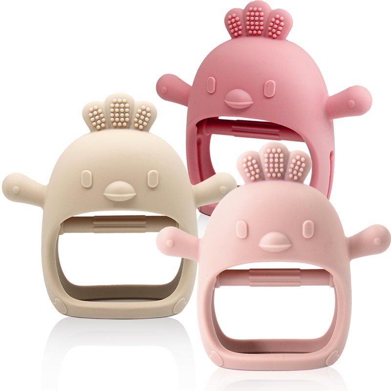 - 【Give your little one a hand with teething】The Silicone Teething Mitten is the perfect solution for babies who aren't yet able to hold onto teethers. The soft silicone mitten fits over little hands, and the inner bar provides extra grip support for babies to grasp. Plus, the mitten protects babies from chewing on their hand—or anything else they could get their teeth on. The character's "arms" mimic a nipple, helping further soothe fussy little ones.