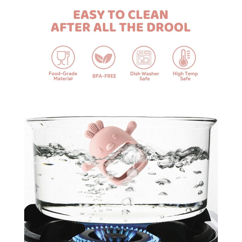 - 【Food Grade Soft Silicone】 Teethers are made of BPA free silicone with no small part to provide a strong, yet soft biting experience. The teething toy can be easily cleaned with a cloth, dishwasher and freezer safe. Our teethers exceed all government safety regulations and standards for parents' peace of mind.