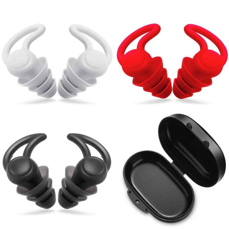 3 Pairs Ear Plugs for Sleeping Noise Reduction Silicone Sleep Earplugs Reusable Hearing Protection Sound Blocking Earplugs for Sleep Snoring Swimming Musician Construction (Black, Grey and Red)