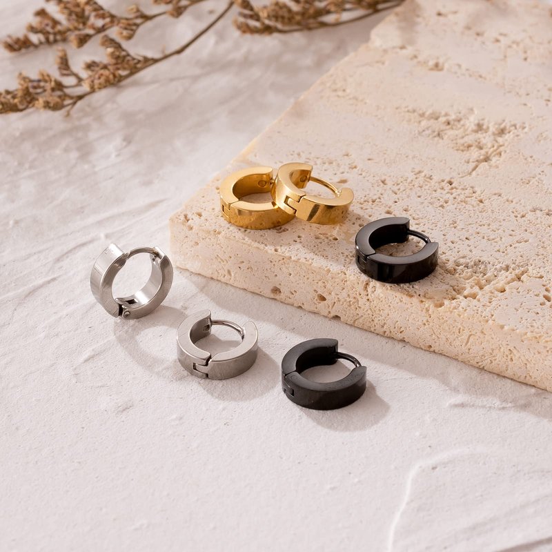 - Stainless Steel Hoop Earrings: You will receive 3 pairs stainless steel hoop earrings,gold color,silver color and black color,minimalist and trendy style.