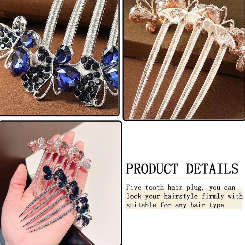 3 PCS Butterfly Rhinestones Hair Combs 5 Teeth Hair Side Combs Crystal Vintage Headpieces Hair Tools Pins Hair Clips Accessories Bride Headdress for Women Girls Wedding Daily Party Present