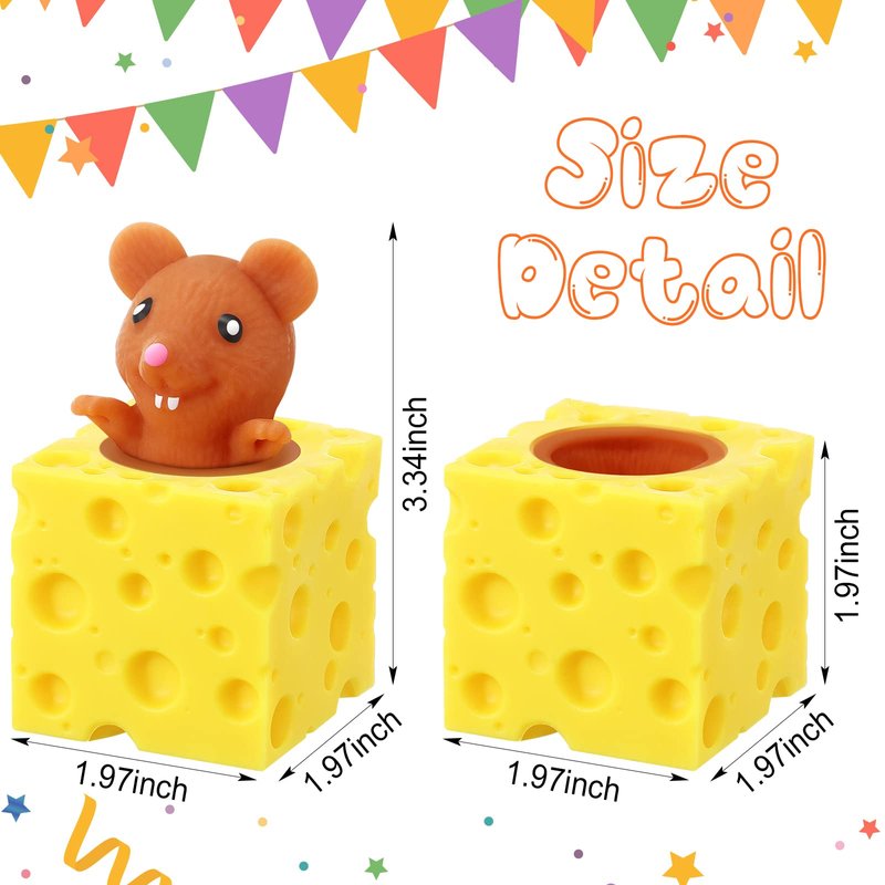 - Decompression Toy: each time you press the yellow cheese toy, the mouse will crop up, which is very decompression, soft and comfortable to play, very suitable for those who want to release the pressure