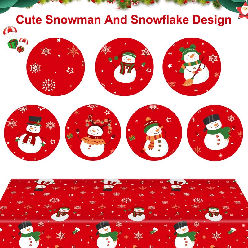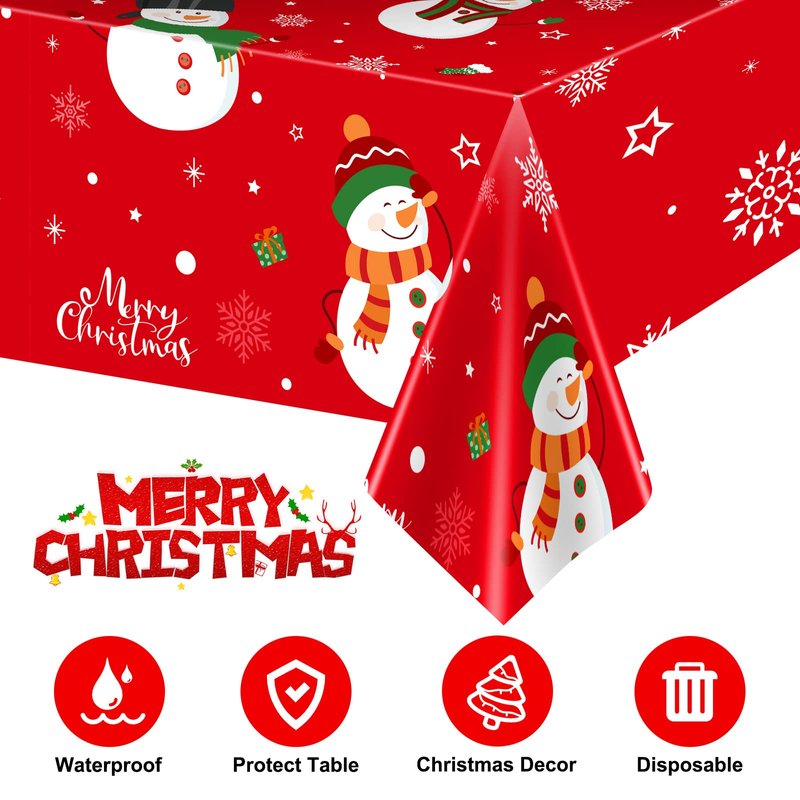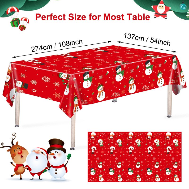 - 【Large Size for Various Rectangle Table】- This Christmas table cloth measures about 108 x 54 inch/274 x 137 cm, which is big enough to cover many rectangular tables. Classic Christmas snowman patterns print designed with vivid colors that kids and adults will love. Coordinate these plastic tablecloths with other Christmas decor to create an eye-catching color scheme, making your Christmas atmosphere more active.