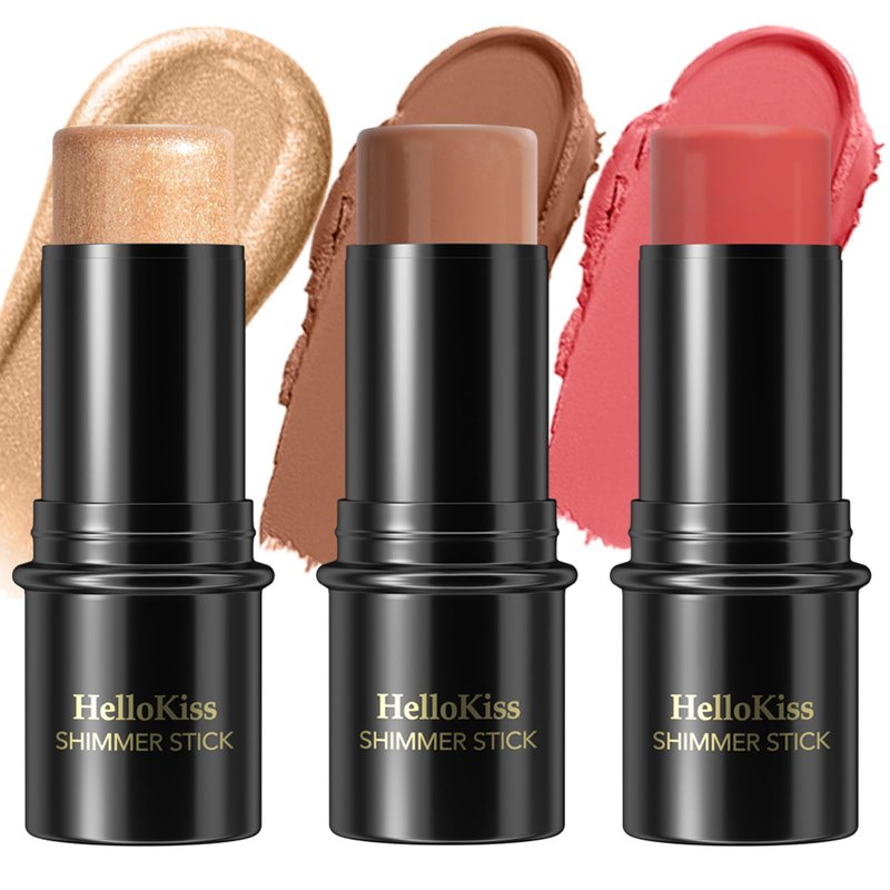3 Pcs Cream Contour Stick Makeup Kit, Shades with Highlighter Stick, Blush Stick and Bronzer Contour Stick for Sculpt the Cheeks, Waterproof, Matte & Dewy Finish