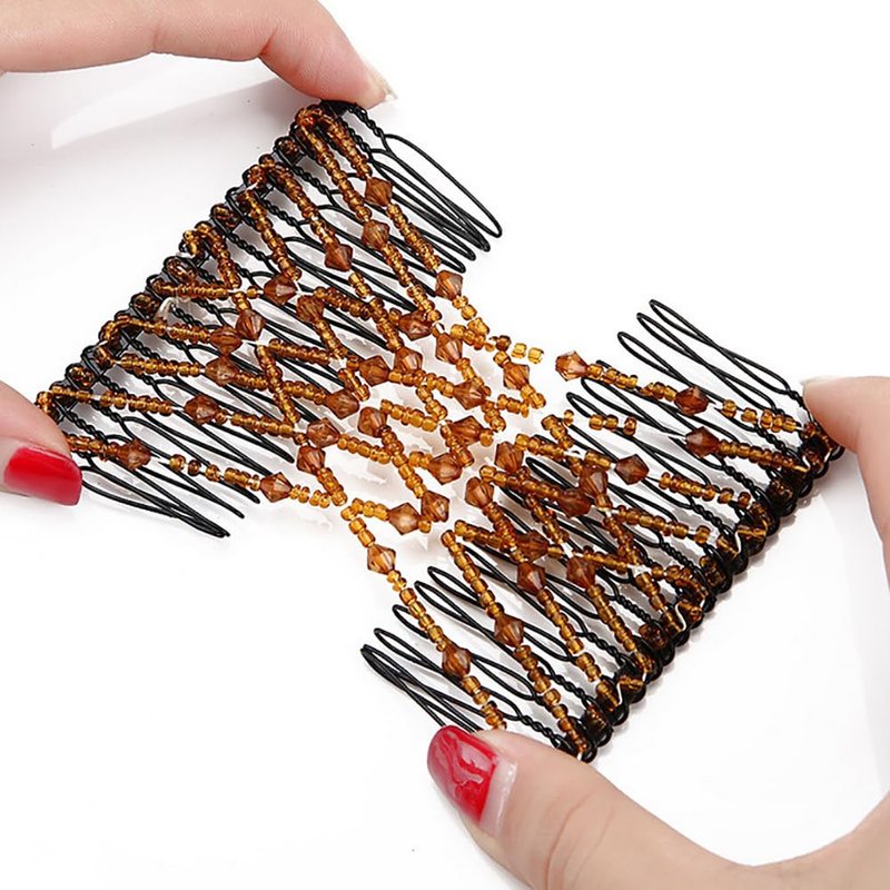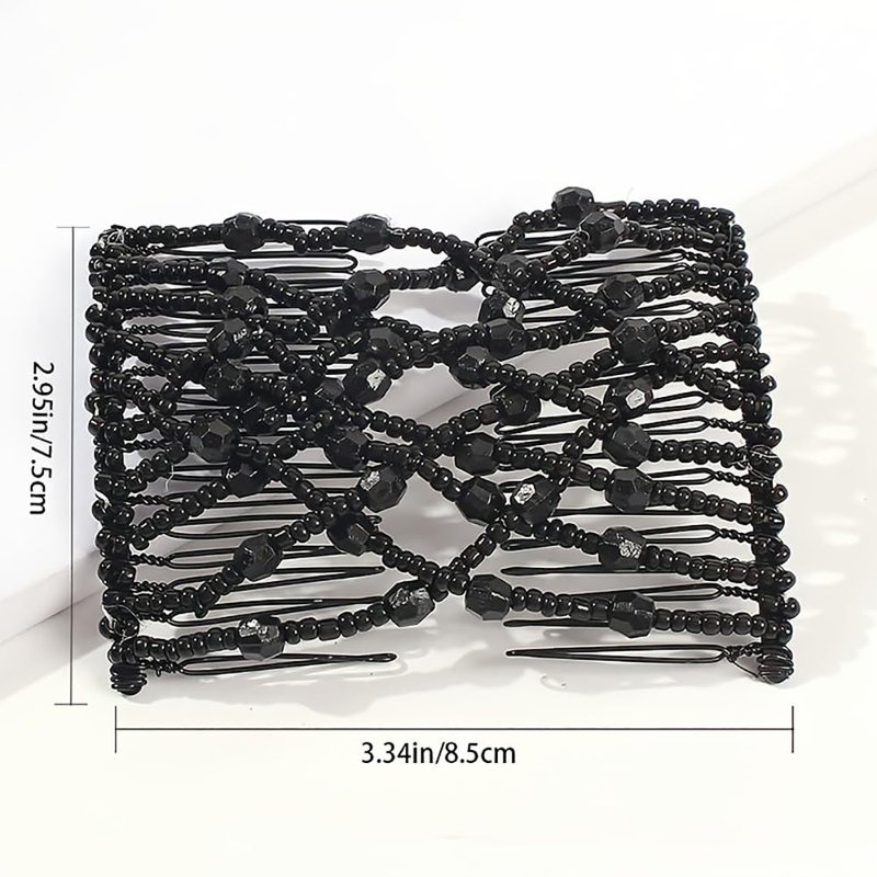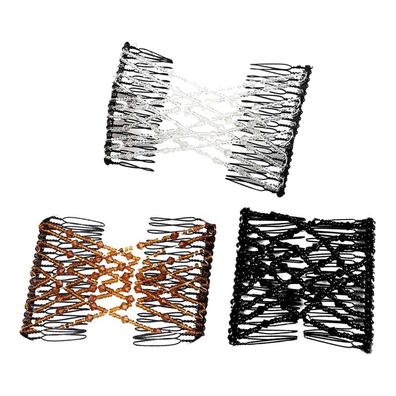 3 Pcs Crystal Beads Hair Combs Decorative Stretchy Hair Comb Elastic Double Combs Hair Slides Pins DIY Hair Accessories for Women Ladies Girls
