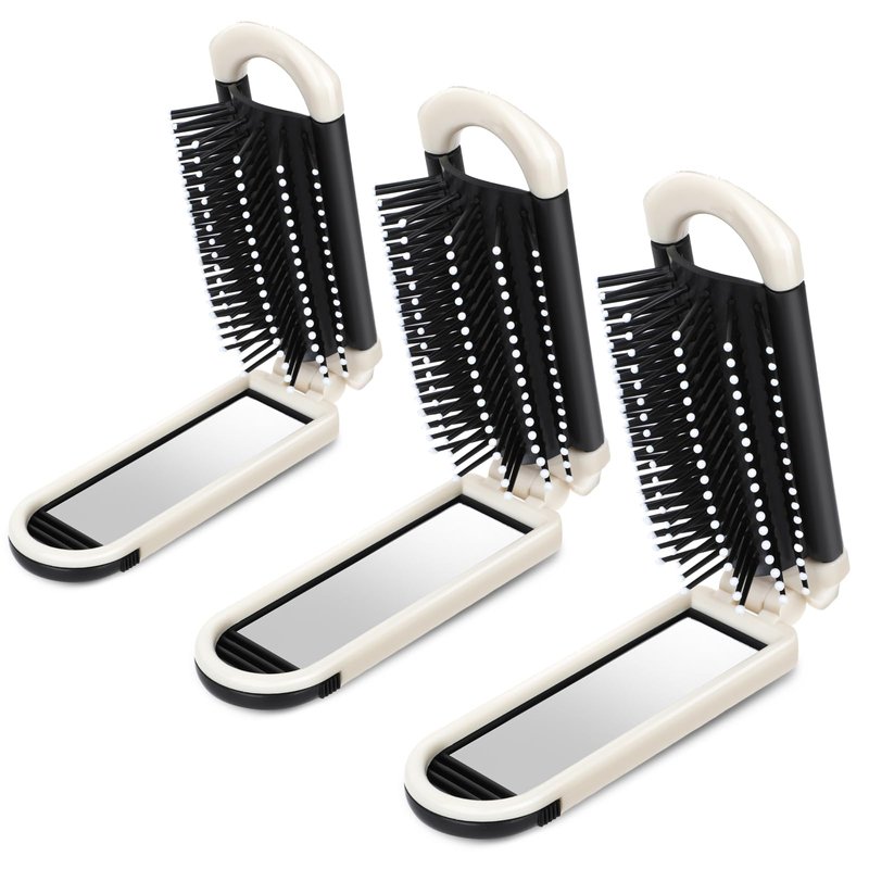 3 Pcs Folding Travel Hair Brush Foldable Mini Compact Hair Brush with Mirror For Women Collapsable Travel Size Massage Comb Travel Brushes For Hair Small Hairbrush Mini Brush For Purse Trip Gym Cream