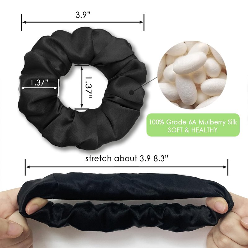 - Material:100% natural mulberry silk, no damage on your hair: This silk scrunchy Is made of 100% mulberry silk , no any harmful fabric added. Premium quality, Gentle on your hair, durable, soft and no marks left on your hair, cause no damage on your hair.