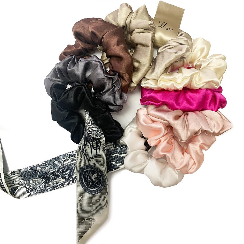 Silk Scrunchies 3 pack contains three silk hair ties. 100% pure mulberry silk scrunchies keep all hair types healthier and more manageable by reducing the friction that leads to frizz, breakage and hair loss. Highly recommended by stylists for healthy hair Helps keep hair healthy by reducing tugging and pulling on hair. The smooth silk helps hair glide over the silk ponytail holder, minimizing breakage and reducing hair creases Silk hair ties add a little luxury and glamour to everyday hair care routines.