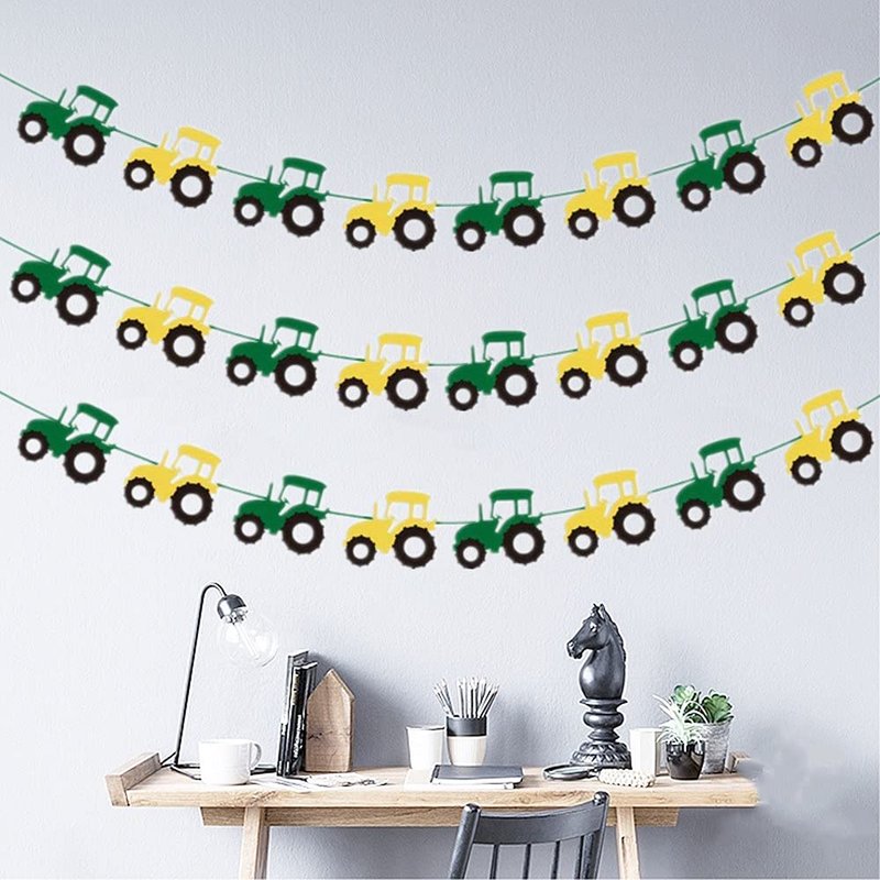 3 Pcs Tractor Bunting Tractor Felt Banner Party Decoration for Birthday Decoration Tractor Party Supplies