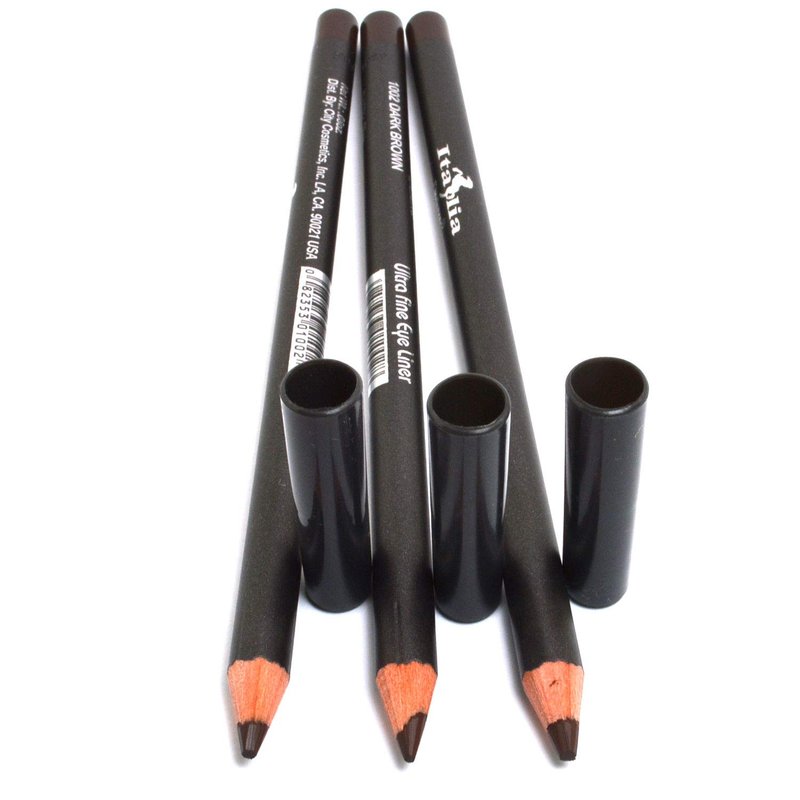 3 Pcs x Italia Deluxe 1002 Dark Brown Ultra Fine Eye liner Pencil Eyeliner Set + Free ZipBag, Full Size