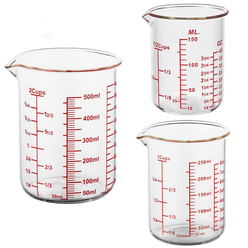 - High Borosilicate Glass Measuring Cup Set,Includes 1/2-Cup, 1-Cup, and 2-Cup