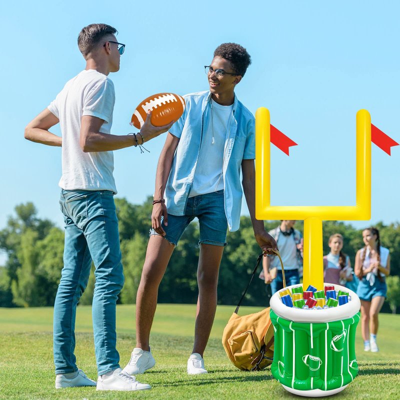 - Goal Post Football Decorations: the package comes with 1 piece of inflatable goal post cooler and 2 pieces of inflatable footballs, nice combinations can provide you much more fun when watching football or sports events