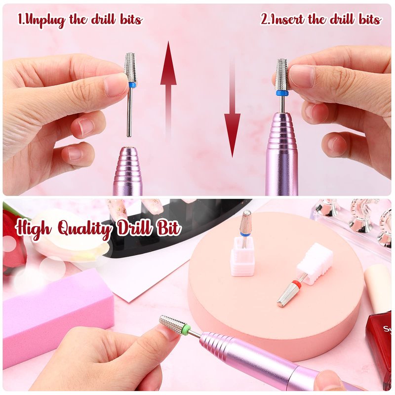 - Quality to apply: the nail drill bit is made of cemented carbide and tungsten steel, reliable strength, durability and cutting performance, low heat, less dust, can quickly and well reshape, polish, smooth, grind, and polish, carving and smoothing gel nails or acrylic nails