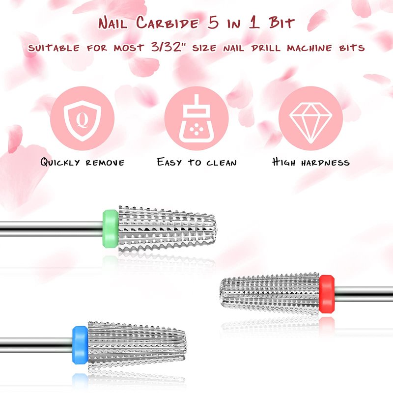 - 2-Way rotation: our nail carbide 5 in 1 bit can be rotated to the right or left to achieve smooth cutting in clockwise and counterclockwise directions, very suitable for left and right hands without changing other sizes during work