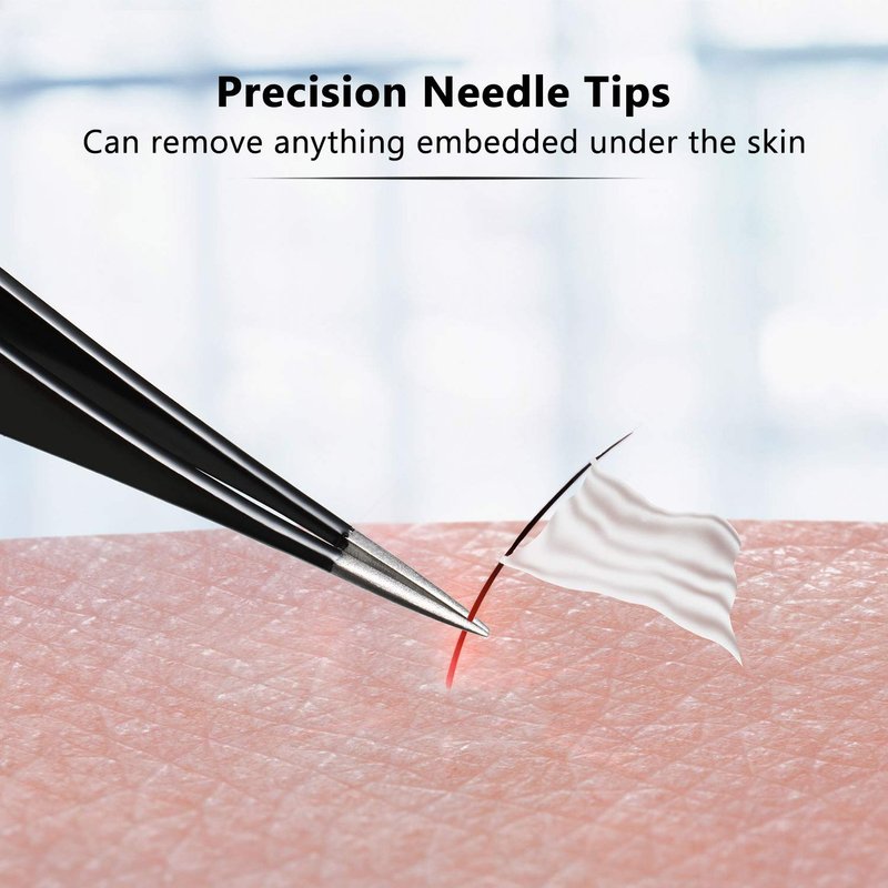 - Precision needle tips: featuring long pointed precision tip, these stainless steel tweezers can remove anything embedded under the skin, no matter how small; When it comes to handle ingrown hair, these tweezers can also easily spring out the hair by grasping between both tips