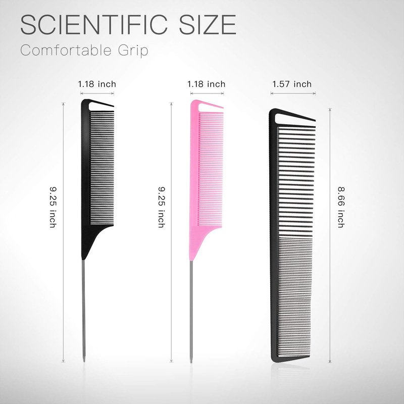 - 【Rat Tail Handle Design】: The teasing combs are designed with a long and thin stainless steel pintail, which is practical for styling, parting, back combing, post styling and hair coloring.will not break during normal use, comfortable handle slide-proof to hold. the fine-toothed comb has also been innovative in appearance