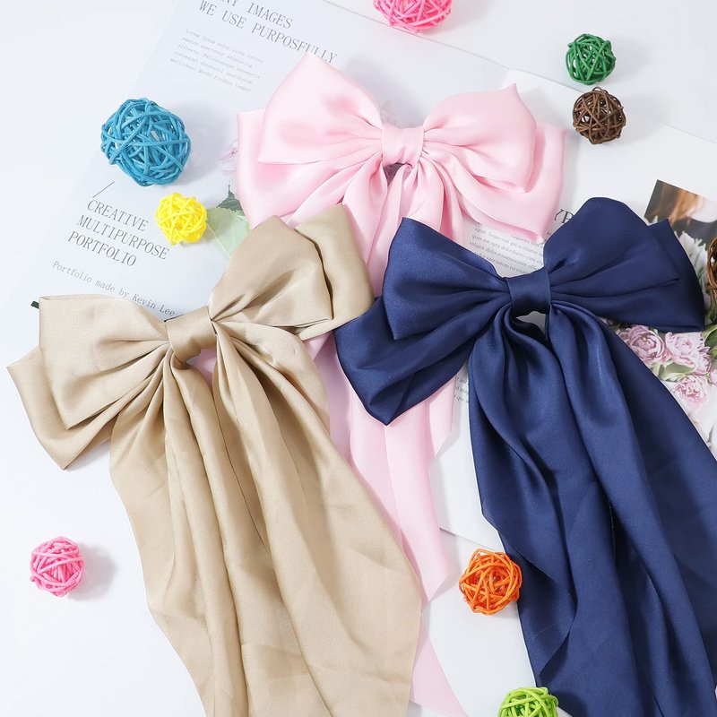 - [Elegant design] A double bowknot, coupled with a perfect long ribbon design, can make every girl more elegant and charming after wearing it. Perfect for all hairstyles, go with everything in your closet, from your day-to-day office attire to your evening wear, from your casual workout clothes to jeans and shirts, which add highlights to your hairstyle.