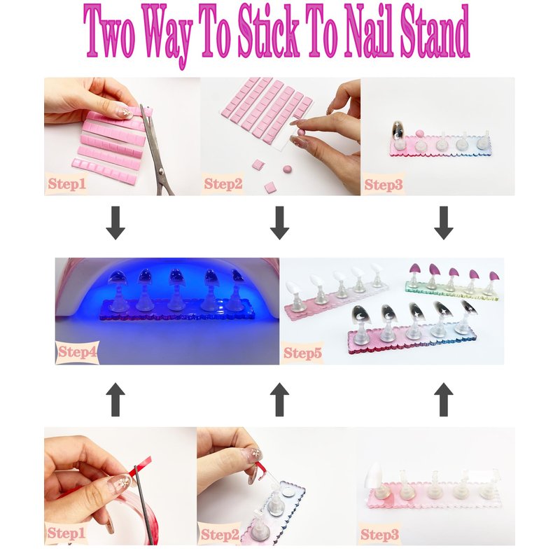 - Must Have for Doing Your Own Nails:Our product include all items you need for nail art design.You will receive 3 pcs acrylic nail stand,1 crystal nail base,16 pcs nail tip holder,48 pcs reusable adhesive putty and 1 pcs 9.8Ft Double-sided Tape.Generous combination of nail stand set can meet all you daily nail art design demands.