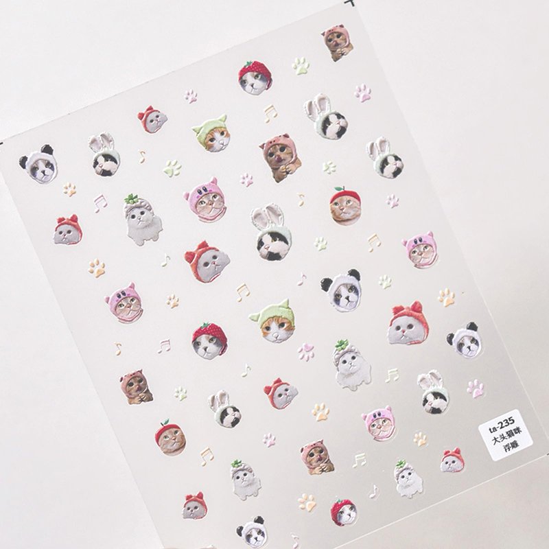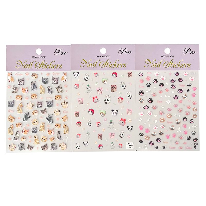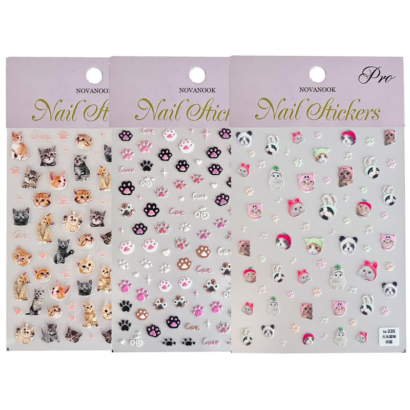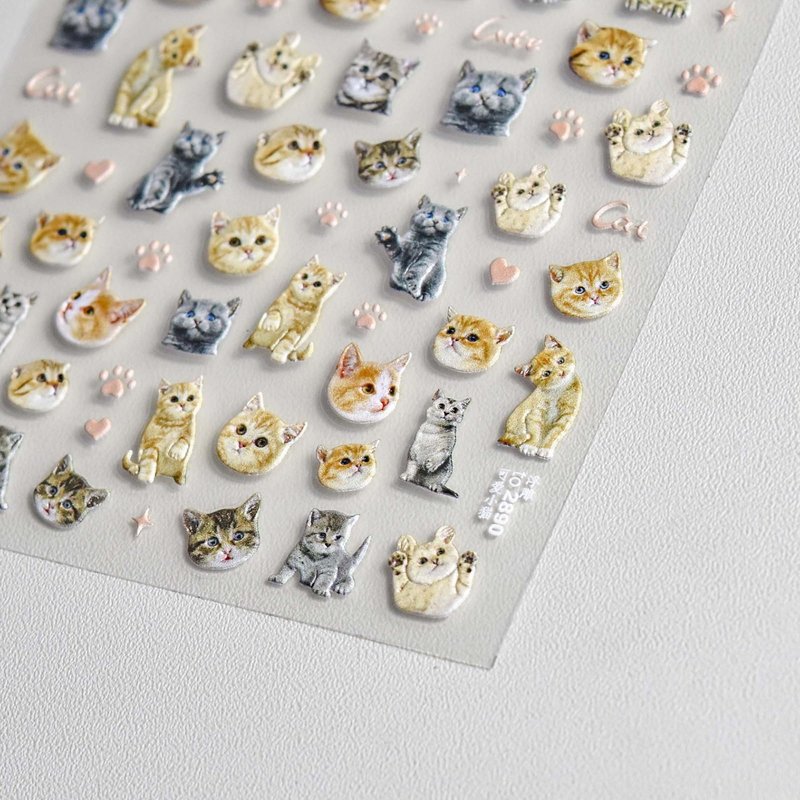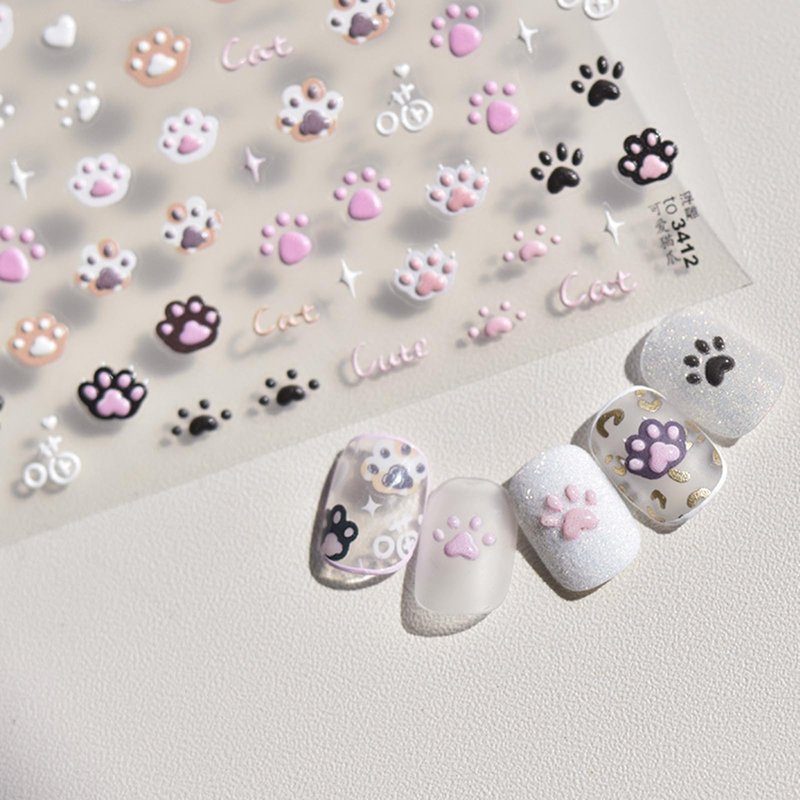3 Sheets Cat Nail Stickers, Cute Nail Stickers, Cat Nail Decals, Cute Nail Art Stickers, Embossed Cat Claw Nail Stickers, Embossed, Cute Nail Supplies, Nail Art Stickers, DIY Nails