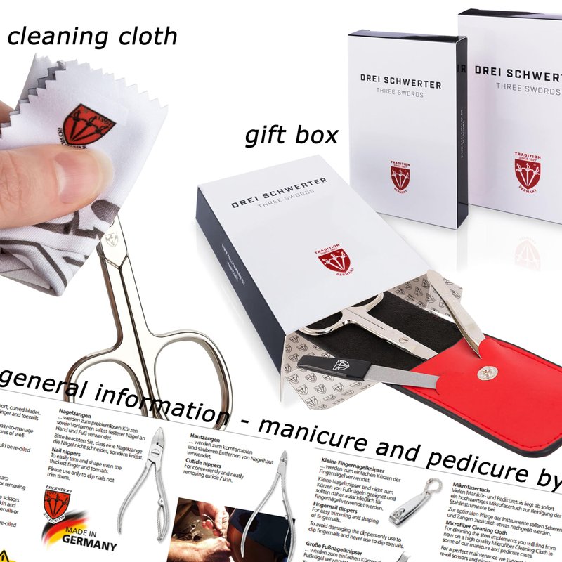 - STEEL IMPLEMENTS: Hand made, bright nickel plated (protection against corrosion), polished and hardened. All cases come in an attractive gift box. Instruments are made by 3 Swords since 1927.