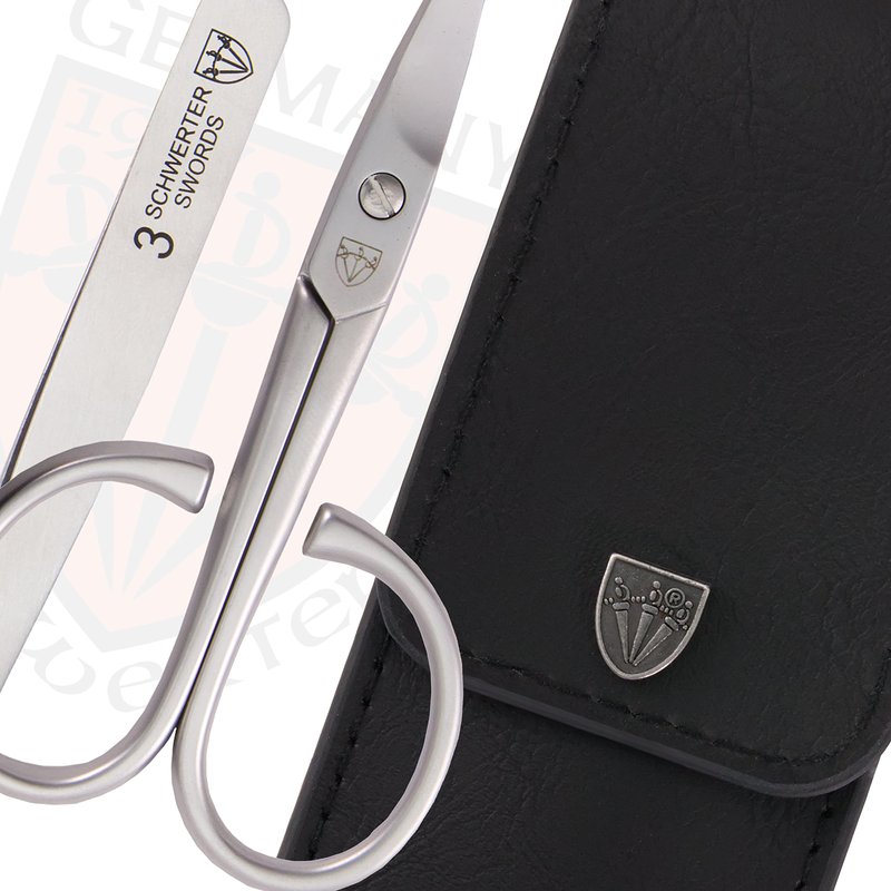 3 Swords Germany - brand quality 3 piece stainless steel INOX manicure pedicure grooming kit set for professional finger & toe nail care scissors file tweezers genuine leather case in gift box (03881)