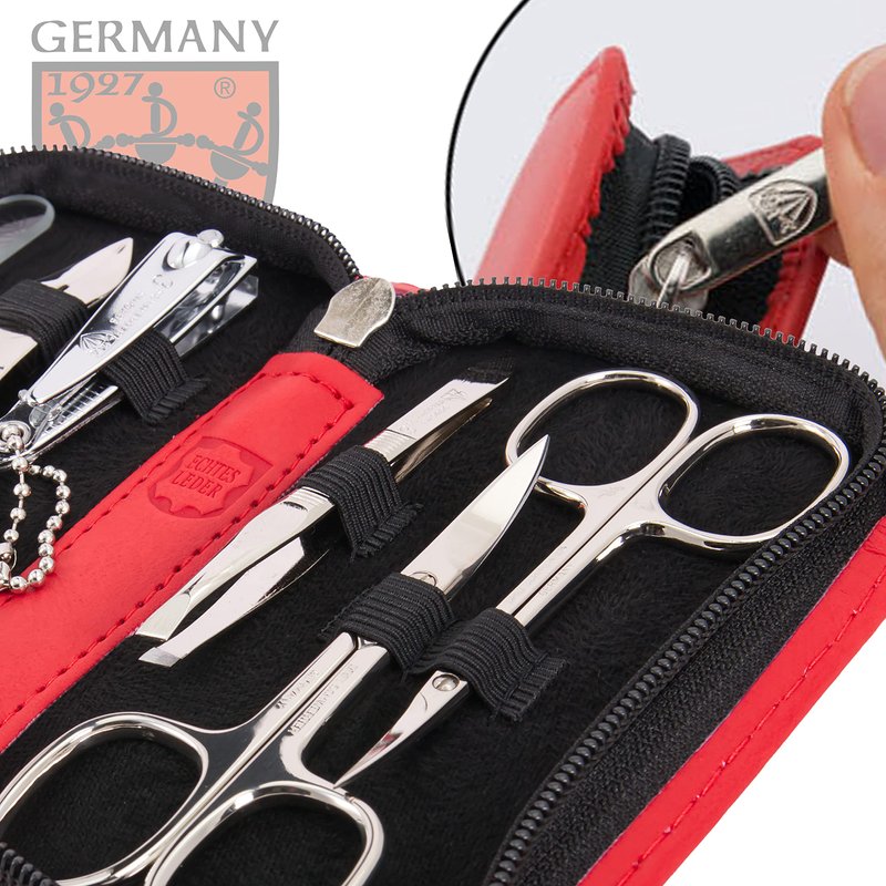 - STEEL IMPLEMENTS: Hand made, bright nickel plated (protection against corrosion), polished and hardened. All sets come in an attractive gift box. Instruments are made in Solingen / Germany (except nail clipper).