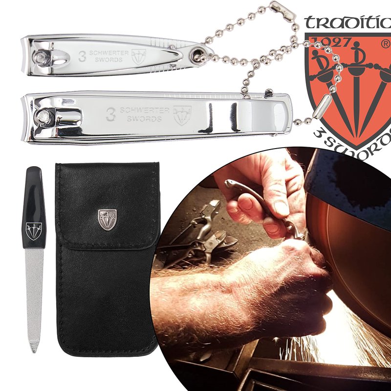 3 Swords Germany – Brand Quality fingernail & toenail Clipper, Manicure, Pedicure Nail Care by with Metal Nail File and case, Silver Color Edition