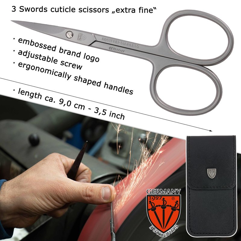 3 Swords Germany - brand quality STAINLESS STEEL INOX CURVED CUTICLE SCISSORS (1 PIECE) with case for manicure pedicure - nail care by 3 Swords - Made in Germany
