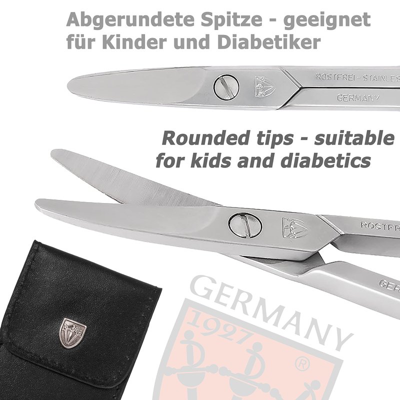 - NAIL SCISSORS "Stainless steel, curved, rounded”. The ground tips of the scissors have been carefully rounded to reduce the risk of injury. Rounded nail scissors are perfectly suited to the needs of diabetics and children.