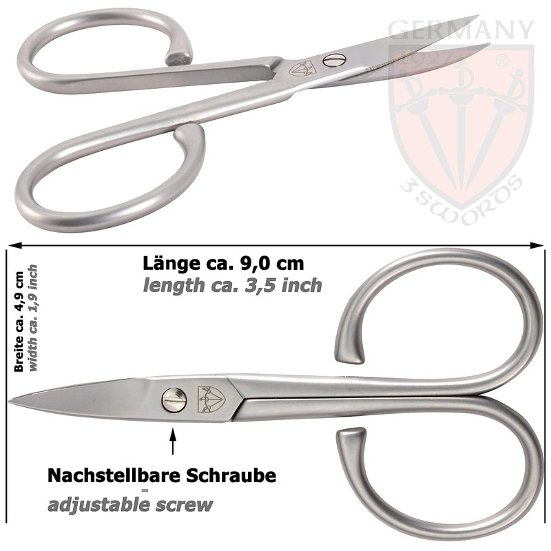 • CONTENTS: Nail scissors made from stainless steel, curved, extra sharp, extra fine, specially hardened, INOX, length ca. 3,54 inch