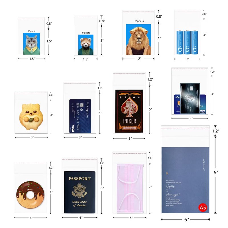 3" x 3" 200pcs Cellophane Self Seal Bags Small Adhesive Bags (18 Sizes to choose from) Clear Plastic Cello Bags 1 Mil for Jewelry Earrings Candies Bakery Cookies Gift