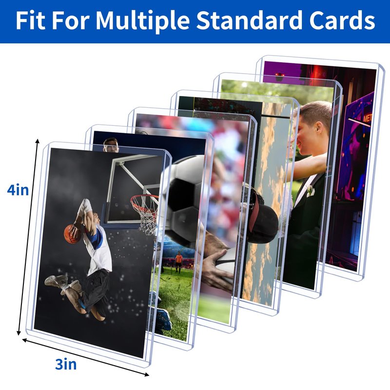 - šćStandard SizećOur card holders are ideal for collecting trading cards. External size 3*4 inches, internal size 2.6*3.8 inches. Standard size suitable for most cards, extremely lightweight, can be carried in a pocket or bag.