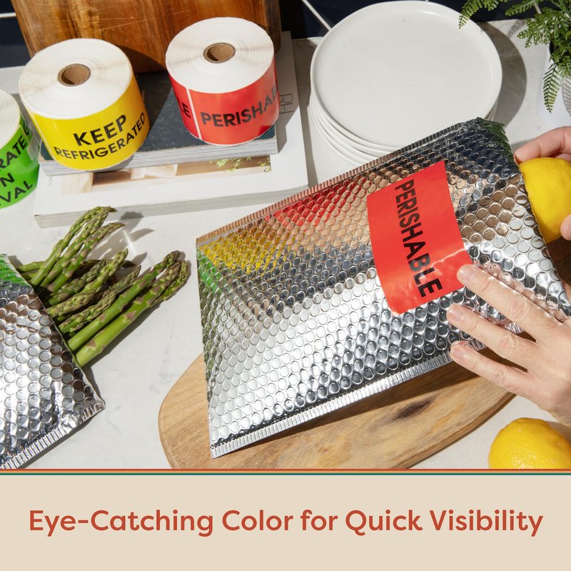 - High-Resolution, Vibrant-Red, Semi-Gloss, Premium Pre-Printed Stock Labels. 3” X 5” Label; 500 Labels/Roll.