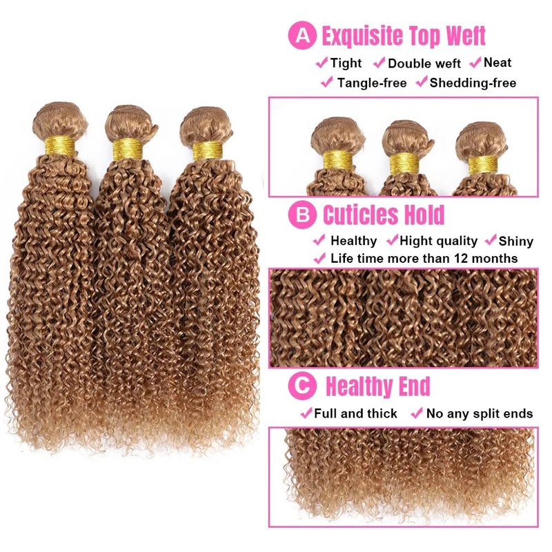 - Honey Blonde Hair Bundles:Color 27 Bundles, Honey Blonde Kinky Curly Bundles Human Hair Weave,Shiny And Beautiful