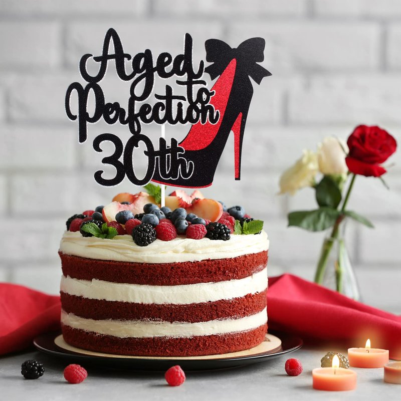 30 Aged To Perfection 30th Birthday Cake Topper - Happy 30 Birthday Glitter Red Heel Cake Topper - 30th Cake Topper for Women Birthday Party Decoration