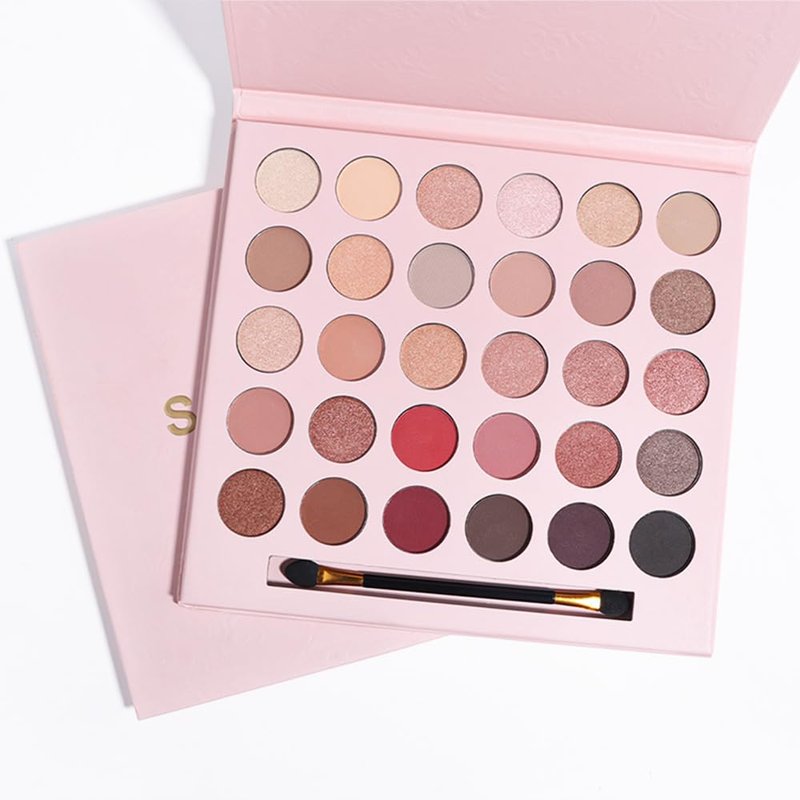 30 Colors Nude Champagne Gold Matte Shimmer Eyeshadow Palette with Brush for Eye Makeup,High Pigmented Pink Purple Brown Eye Shadow Primers Powder Palet de sombras de ojos-Big30
