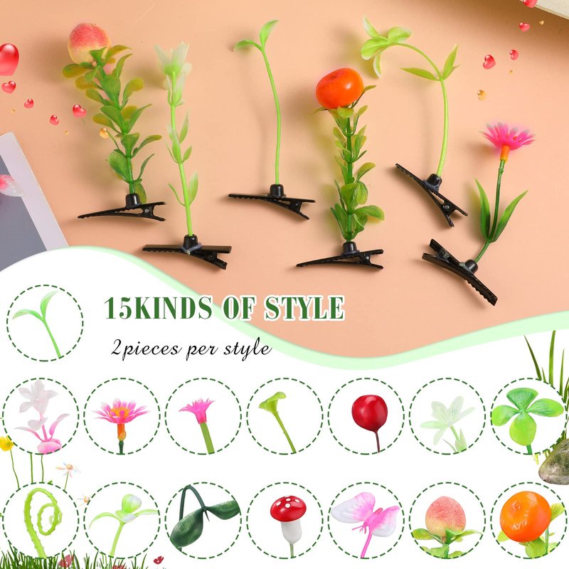 30 Pcs Bean Sprout Hair Clips Mixed Style Plant Hairpins Flower Plant Hair Clip Little Grass Barrette Butterfly Headwear Hair Accessories for Women Girl School Home Party Christmas (Plant Style)