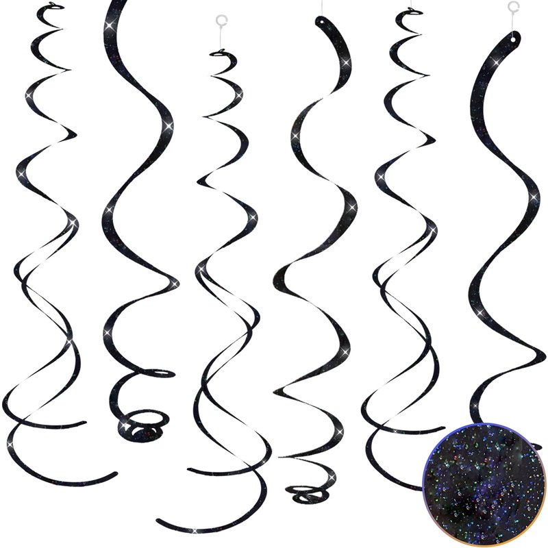 30 pcs Black Hanging Swirls Decorations Swirl Party Decorations Plastic Party Streamer for Ceiling, 26"