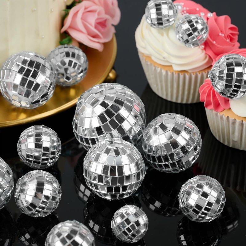 - Flexible Usage: Except for cake decorations, you can use your imagination to DIY these disco ball, Such as stringing them together to make a shining lamp strip or using them as party table centerpieces