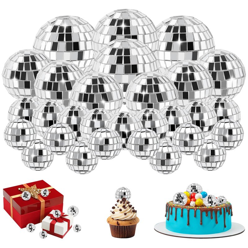 - Disco Ball Decoration Set: Our package includes 10pcs 0.8 inch, 10pcs 1.2 inch, 6pcs 1.6inch, 4pcs 2inch disco balls, totally 30pcs, enough quantity to meet your various decoration needs