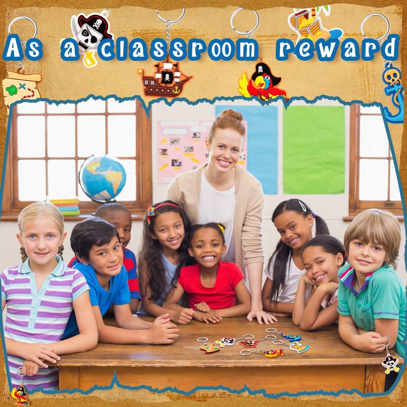 - Lovely and Cute Design: these kids keychains are designed with different pirate patterns, paired with vibrant colors, easy to attract your guests, making your party more joyful and happier