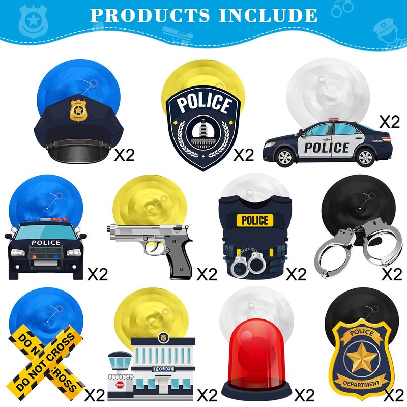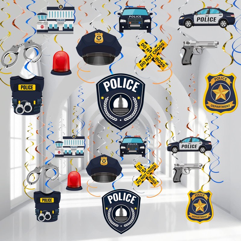 - Police Decoration Kit: this set has 22 pieces of police party decoration cards in 11 different patterns, 22 pieces of foil swirl decorations, and 8 pieces of double spiral decorations, a total of 30 police birthday party swirls decorations, these decorations can add a fun and festive touch to a party