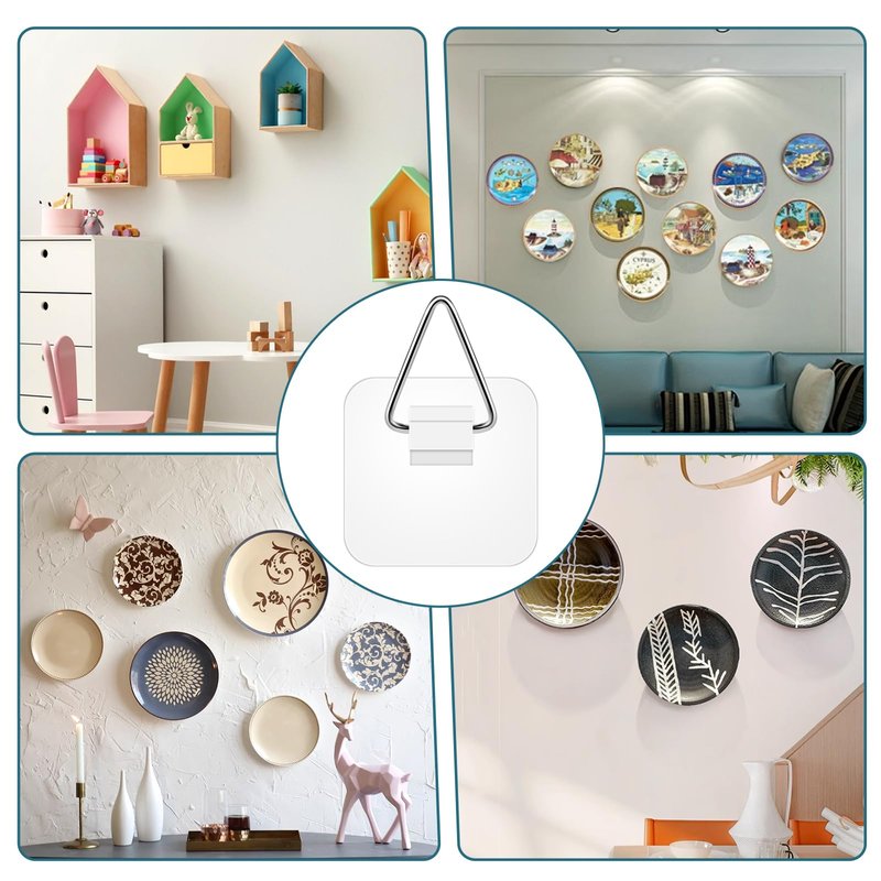 - Invisible Plate Hangers: Show your cherished decor pieces with our adhesive wall plate hangers. Get a seamless and beautiful display as your plates flat hang against the wall.
