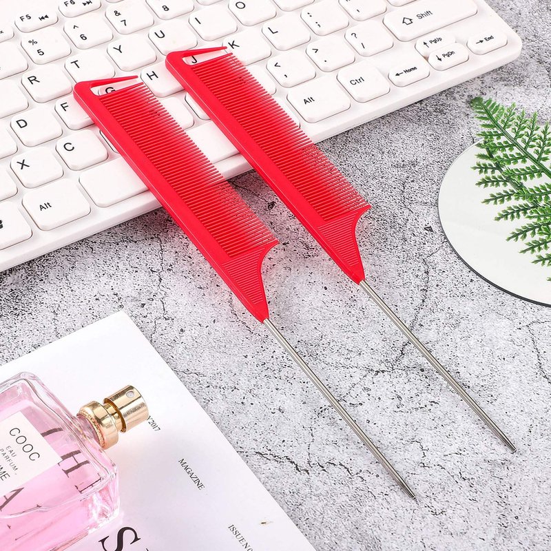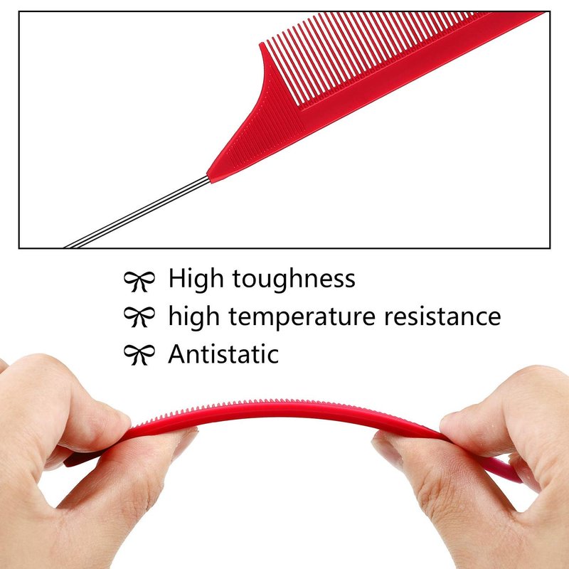 30 Pieces Parting Comb for Braids Hair Rat Tail Comb Steel Pin Rat Tail Carbon Fiber Heat Resistant Teasing Combs with Stainless Steel Pintail (Red)