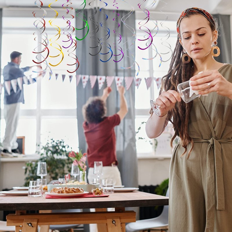 Hanging Swirl Decorations Plastic Streamers Foil Swirls for Ceiling Decorations Party Supplies, Pack of 30